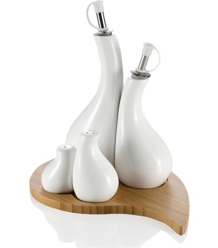 Brandani MENAGE GOCCIA SET 4 PZ PORCELLANA C/SUPPORTO BAMBOO