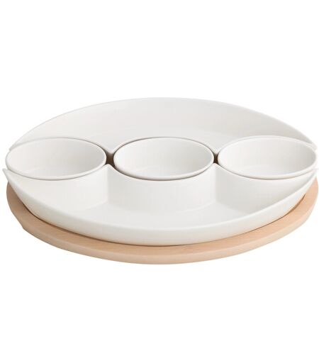 Brandani ANTIPASTIERA TRECCIA PORCELLANA BIANCA C/SUP BAMBOO NATURALE
