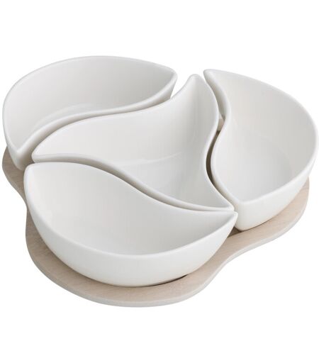 Brandani ANTIPASTIERA TRIFOGLIO PORCELLANA BIANCA C/SUPP BAMBOO NAT