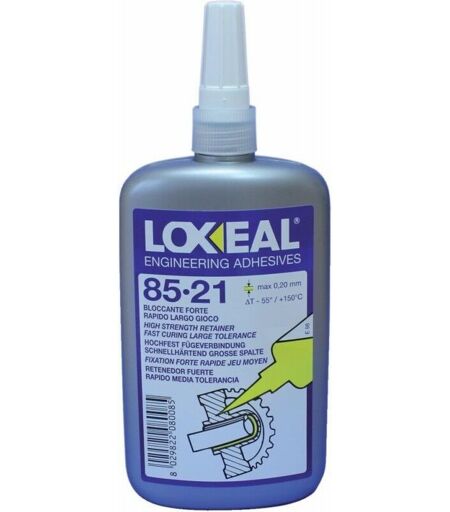 Connessione LOXEAL/filettatura deging 85-21 Impedisce torsione, allentamento e corrosione Eccellente tenuta contro la fuoriuscita di liquidi Altamente solido, non più risolvibile Polimerizzazione rapida, meccanicamente resistente Rinforza le versioni pressa, consente l'utilizzo di corpi scorrevoli invece di cuscinetti intermedi, e permette una maggiore tolleranza di produzione Per il montaggio di cuscinetti, martinetti, pulegge, ingranaggi, cunei, bulloni e connessioni cilindriche ...