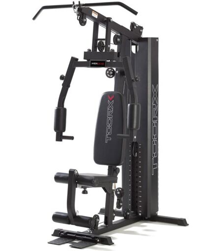 Panca multifunzione MSX 60 di Toorx per l'allenamento casalingo di tutto il corpo con i sovraccarichi, sicura e resistente, salvaspazio e richiudibile, con barra tricipiti, maniglia e cavigliera per trazioni incluse. struttura tubolare in acciaio rinforzato a sezione rettangolare 50x70 mm Verniciatura doppia a polveri epossidiche, antigraffio dimensione sedile 410 x 320 x 55 mm richiudible regolazione/Inclinazione sedile verticale su 2 livelli dimensione schienale 660 x 320 x 55 mm rulli caviglie in foam ad alta densità con rivestimento in eco pelle peso massimo front press 91 Kg peso massimo butterfly 36x2 Kg peso massimo lat pull 73 Kg peso massimo low pulley 73 Kg pacco pesi 70 kg con carter di protezione laterale regolazione leg extension orizzontale su 4 livelli regolazione butterfly verticale 880/970 - orizzontale 750/820 sistema di carrucole e pulegge con cuscinetti a sfera sistema di cavi in acciaio intrecciati rivestiti in poliuretano. Carico di rottura 2000 Kg dotazione: barra tricipiti, maniglia e cavigliera per trazioni incluse funzioni: triceps, abdominal crunch, leg extension, high pull AB crunch, tricep push-down, lat pull down, biceps, pectoral fly, seated press bar row, seated pulley row, front press, leg kick back, seated shoulder press, upright row, standing leg curl certificazione CE EN ISO 20957-1/957-4 ...