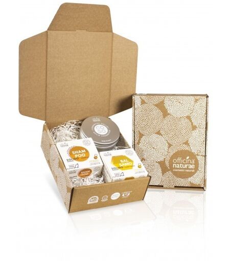 La Gift Box Co.So - Hair di Officina Naturae è una confezione regalo con 3 prodotti plastic free per la cura dei capelli. La Gift Box Co.So - Hair di Officina Naturae è una confezione regalo plastic free per la cura dei capelli. La box contiene 3 prodotti: Lo Shampoo Rinforzante Illuminate è un detergente normalizzante e dermo-purificante per capelli stressati, colorati e con doppie punte. Il Balsamo Rinforzante Illuminante è un condizionante ad azione riparatrice per trattare capelli danneggiati, colorati e con doppie punte. Barattolo in alluminio Porta CO.SO.Come si usa la Gift Box Co.So - Hair di Officina NaturaeDetergere la chioma completamente con acqua. Successivamente strofinare lo Shampoo Rinforzante tra le mani o direttamente sui capelli per creare una piacevole schiuma. Ripetere l'operazione se necessario. Frizionare il Balsamo Rinforzante sui capelli ove ne senti la necessita o inumidirlo leggermente applicandolo nelle zone interessate. Asciuga all'aria il tuo CoSo e poi riponilo nel Barratolo Porta Co.So. Prova la Luffa Portasapone! Gift Box Co.So - Hair Officina Naturae INCI/IngredientiShampoo Rinforzante Illuminante: Sodium Coco-Sulfate, Sodium Cocoyl Isethionate, Rice Starch, Cetearyl Alcohol, Ricinus Communis Seed Oil, Aqua, Vitis Vinifera Leaf Extract, Guar Hydroxypropyltrimonium Chloride, Parfum, Cocamidopropyl Betaine, Castanea Sativa Seed Extract*, Betula Alba Leaf Extract*, Curcuma Longa Root Extract, Tetrasodium Glutamate Diacetate, Calamine, Linalool, Limonene, Citral, Geraniol, Citric Acid. Balsamo Rinforzante Illuminante: Cetearyl Alcohol, Myristyl Alcohol, Behentrimonium Methosulfate, Tapioca Starch, Aqua, Zea Mays Starch, Cocamidopropyl Betaine, Glycerin, Guar Hydroxypropyltrimonium Chloride, Parfum, Castanea Sativa Seed Extract*, Betula Alba Leaf Extract*, Ricinus Communis Seed Oil, Curcuma Longa Root Extract, Vitis Vinifera Seed Oil, Tocopheryl Acetate, Tetrasodium Glutamate Diacetate, Citric Acid, Linalool, Limonene, Geraniol, Citral. ...