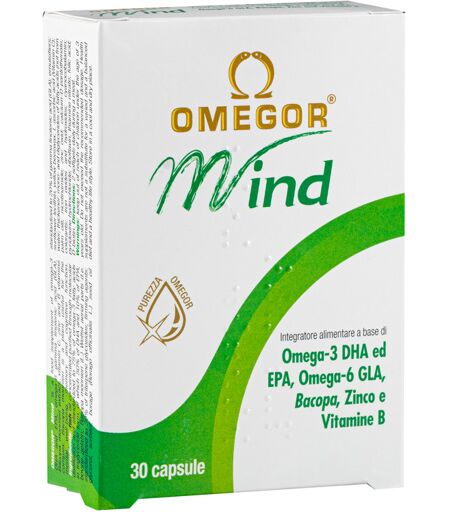 OMEGOR Mind - Descrizione Integratore alimentare a base di acidi grassi omega - 3 DHA ed EPA, acidi grassi omega - 6 acido gamma - linolenico (GLA), estratto di Bacopa monnieri, vitamina C, zinco e vitamine del gruppo B. L'assunzione giornaliera di 250 mg di DHA contribuisce a mantenere le normali … ...