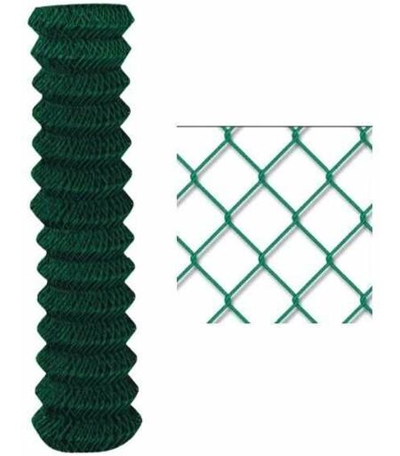 Rete romboidale zincata e plasticata, e' adatta per recintare allevamenti di mucche, capre, pecore o per il contenimento di cinghiali, ma anche per parchi, terreni agricoli e campi sportivi; la maglia sciolta si adatta a qualsiasi tipo di superficie o terreno. Prodotta con fili del diametro di mm 2,40, ha maglie delle dimensioni di cm 50x50, altezza di cm 200 ed è in rotoli da m 25. Marchio T-Rex Rete maglia sciolta zincata e plasticata Maglie mm 50x50 Ø filo mm 2,40 ...