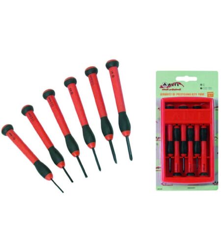 Serie 6 cacciaviti orologiaio taglio e croce Lama acciaio temprato Impugnatura antisdrucciolo Composizione: PH 0-1 T 1,4-2,0-2,4-3,0 ...