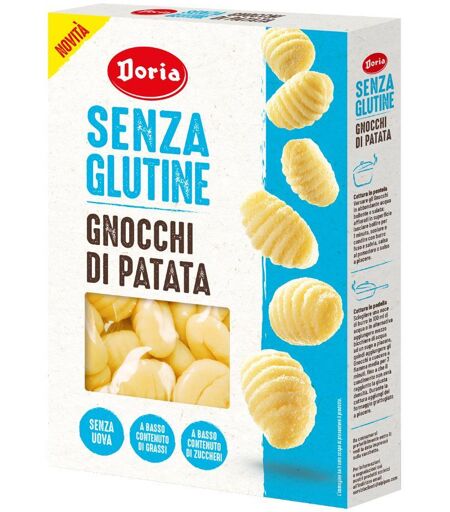 Doria - GNOCCHI DI PATATA - SENZA GLUTINE - Descrizione Gnocchi di patata pastorizzati, senza glutine specificamente formulati per celiaci. Senza uova, a basso contenuto di grassi, a basso contenuto di zuccheri. - Ingredienti Patate reidratate 98%, sale, aroma naturale, spolvero di farina di riso; … ...