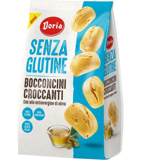 Doria - BOCCONCINI CROCCANTI - SENZA GLUTINE - Descrizione Prodotto senza glutine specificamente formulato per celiaci. Fonte di fibre, senza conservanti, senza olio di palma, con olio extra vergine di oliva. - Ingredienti Amido di mais, acqua, grano saraceno decorticato, destrosio, olio extravergi… ...