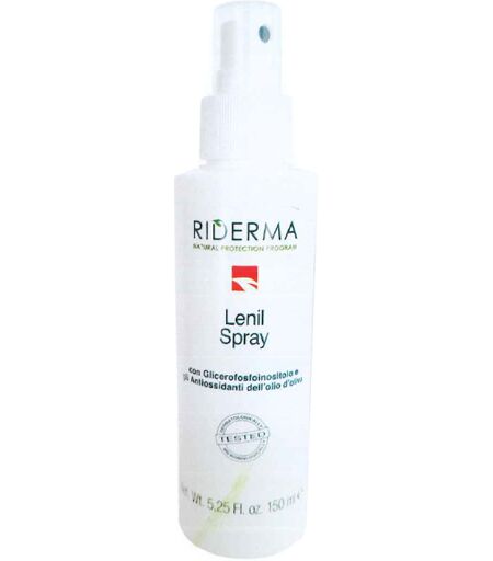 RIDERMA Lenil Spray - Descrizione Emulsione fluida specifica per il trattamento di cute reattiva e sensibile, presenza di arrossamento, prurita, irritazione ed infiammazione. Aiuta a ripristinare il naturale equilibrio della barriera cutanea, svolgendo un'azione emolliente, lenitiva e calmante. Ind… ...