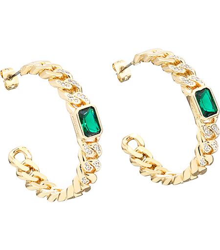 Orecchini a catena appariscenti yg+verde cz 40mm.Genere: Donna.Famiglia: Orecchini.Materiale bracciale: Ottone.Colore quadrante: Verde.Chiusura: A pressione. ...