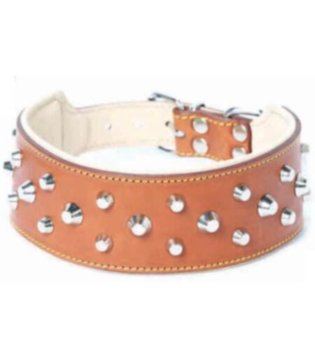 Inferramenta - collare per cane in cuoio imbottito con 2 file di borchie larg mm 45 lun cm 63
