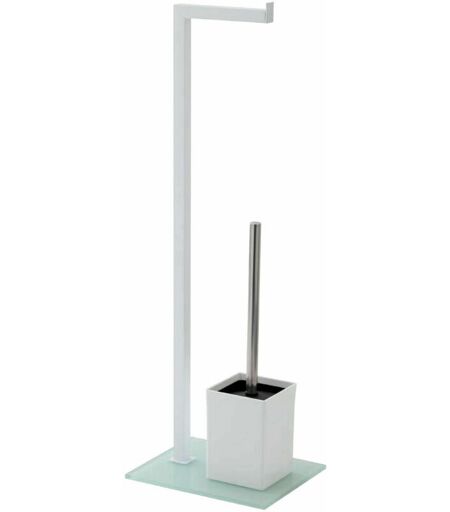 FERIDRAS Piantana Porta Rotolo Portascopino Portarotolo Scopino Spazzolino Bagno Tonalità: Acciaio Bianco