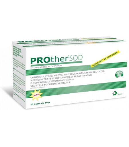 PROther SOD - Descrizione Integratore alimentare utile per fornire un apporto supplementare di proteine alla dieta. Le proteine contribuiscono alla crescita e al mantenimento della massa muscolare. Il prodotto contiene inoltre SOD (SuperOssidoDismutasi). Ingredienti DIF16WPI (proteine isolate del s… ...