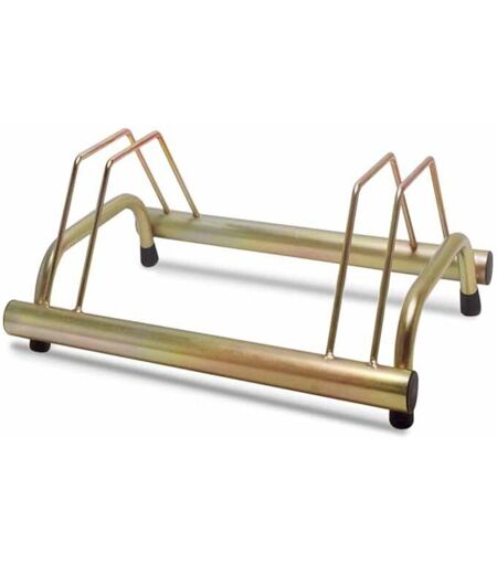 Rastrelliera porta bici da 2 posti in acciaio, zincatura a freddo, colore tropical oro, tappi in pvc nero. Dimensioni: 63 x 42 cm - h 26 cm. kg 3 Porta biciclette a terra 2 posti, zincatura a freddo colore tropical oro, con tappi in pvc nero ...