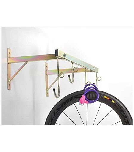 Porta bici a parete sia per esterni sia per interni, con anelli per agganciare un lucchetto antifurto, per quattro Biciclette . Il Porta bici è smontabile, ed è dotato di viti e tappi in pvc neri. Dettagli Prodotto: 4 posti; a parete; è dotato di anelli per il lucchetto antifurto; è smontabile e salvaspazio; verniciato, colore tropical oro con tappi in pvc neri. Dimensioni e Materiali dimensioni (altezza x lunghezza x larghezza): 28x78x37 cm; pesa 5 kg; in acciaio. ...