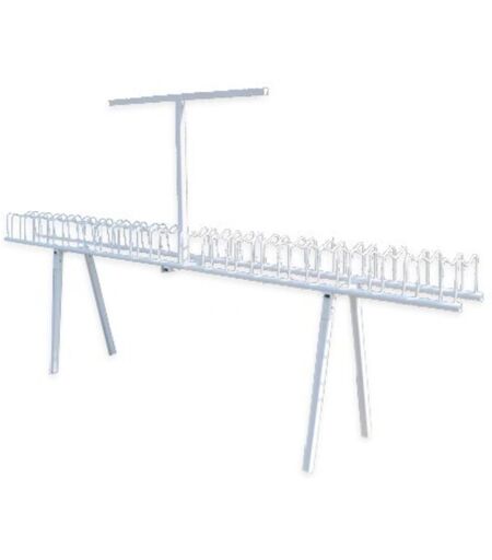 Espositore porta biciclette a terra da 20 posti in acciaio. Verniciatura grigia o personalizzata, tappi in pvc neri, viti comprese. Con binario verniciato nero per bici esposta alta come si vede in foto. L' espositore porta biciclette viene fornito tutto smontato, imballo sfuso su un bancale con dovute protezioni. Dimensioni: 300 x 100 cm - h 70 cm. Per informazioni scrivici a info@andrys.it Questo espositore porta biciclette serve per esporre molte bici, usufruendo di uno spazio tutto sommato ridotto. Nella sua lunghezza di 3 metri si possono mettere 10 bici per parte più una esposta alta. L' espositore porta biciclette viene molto richiesto nei centri commerciali, negozi di biciclette etc. ...