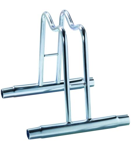 Porta biciclette a terra per riporre una bici, creato in acciaio con zincatura a freddo e tappi in pvc nero. Il sistema di posteggio bici alto e basso permette di posteggiare con cura 3 biciclette. Porta biciclette a terra 1 posto alto di congiunzione, zincato a freddo, color argento, non ci sono tappi. Avendo le conifiche in entrambe le parti permette di collegarsi formando un unico porta bici. La curvatura superiore è un sistema brevettato dalla ditta Andrys srl per sistemare anche le biciclette con freno a disco. ...