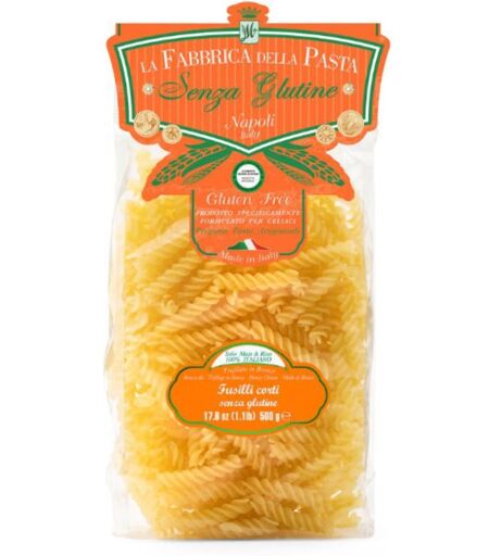 Fusilli corti senza glutine Pasta artigianale di Gragnano, realizzata con solo farine di mais, riso ed acqua di Gragnano, con trafilatura al bronzo e successiva lenta essiccatura. Conservazione Il prodotto ha una validità di 36 mesi dalla data di produzione. Conservare in luogo fresco e asciutto lo… ...