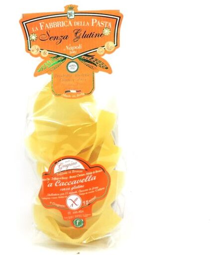 'a Caccavella senza glutine - Descrizione Grande, unico e senza glutine: pasta realizzata con le migliori farine di mais e riso, è un formato ideale per ricette uniche e saporite. Ingredienti 80% farina di mais, 20% farina di riso, acqua. - Senza glutine. Il prodotto può presentare tracce di senape… ...