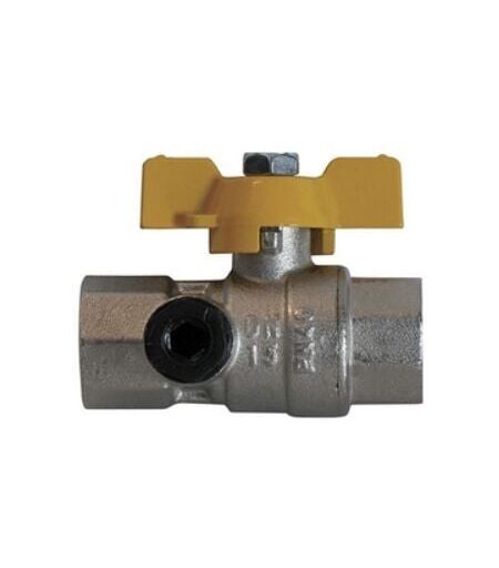 Valvola a sfera femmina/femmina a passaggio totale per gas con farfalla gialla, nichelata, con presa di pressione da 1/4". ...
