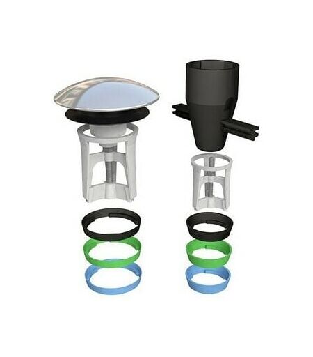 Dispositivo di attacco per piletta sia da 11/4 che da 1, tappo in ottone cromato per lavabo e bidet. Diametro utilizzabile 30-38 ...