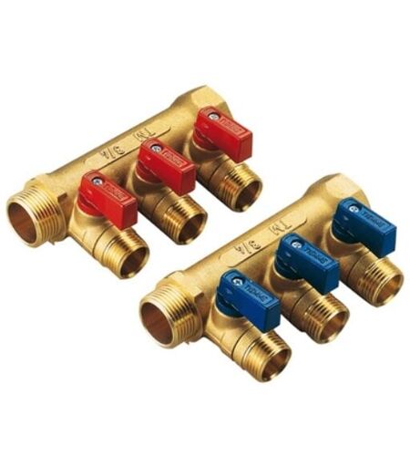 (DianFlex) COLLETTORE NINO GIALLO C/VALVOLA A SFERA DA 3/4 x 16 3 VIE 3/4 x 1/2 x 16 ...