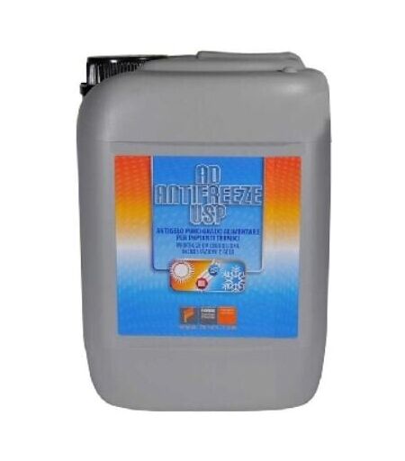 Antigelo protettivo a compatibilità alimentare, a base di glicole propilenico inibito. Vantaggi: elevato potere antiruggine e antischiuma, controlla la formazione di calcare, previene la formazione di idrogeno, mantiene elevato il rendimento dell'impianto, protegge da - 14°C a -60°c in base alla sua diluizione. Vedere tabella sulla scheda tecnica. ...