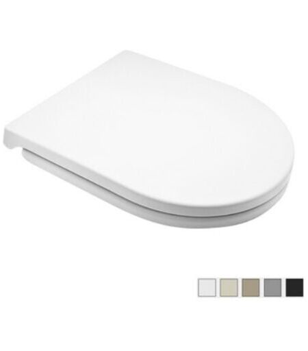 Sedile in termoindurente (Forma tipo 7) dedicato a casa ceramica RAK serie Feeling. Dimensioni: Lunghezza cm 39-43. Larghezza cm 36,5. interasse cerniere cm 12,5-14,5. Mod. con cerniere regolabili tipo C. Sgancio rapido. Soft Closing. ...
