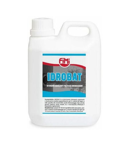 Idrobat è un sanificante, detergente, sgrassante e deodorante studiato appositamente per le vasche da bagno e nello specifico dei circuiti delle vasche idromassaggio. Non corrode gomma, plastica, resine, metalli etc. e non macchia. Modalità d'uso: Effettuare il trattamento regolarmente. Versare 50-100 ml di prodotto nella vasca piena, azionare il sistema di idromassaggio per 2 min. e lasciare poi agire per 10 min. prima di svuotare la vasca. Non è necessario sciacquare. ...