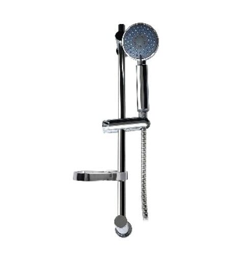 Saliscendi doccia composto da: doccetta 5 funzioni, finitura cromata, diametro 93 mm, water saving. Laccio doccia 150 cm in acciaio inox, supporto asta superiore scorrevole. Asta in acciaio inox diamentro 19 mm, con porta sapone. Altezza totale 60 cm. Finitura cromata. ...