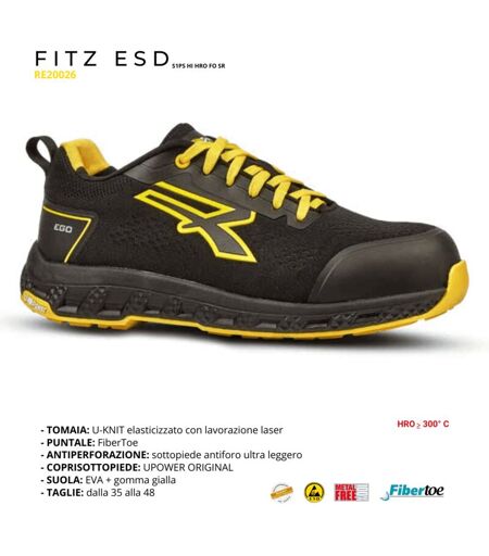 U-POWER Scarpe Antinfortunistiche UPower Red Ego Fitz S1PS Nero/Giallo 45