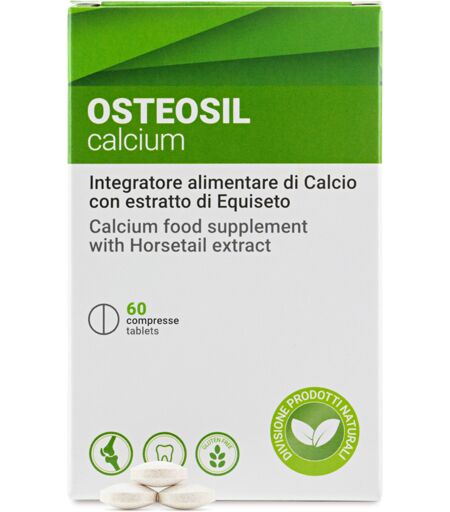 Osteosil Calcium - Integratore alimentare utile nel trattamento naturale del rimodellamento osseo, nelle condizioni cliniche legate al riassorbimento osseo e nella preparazione dell'osso alveolare in impiantologia. Ingredienti Estratto secco di equisetum arvense titolato in silicio (in forma di aci… ...