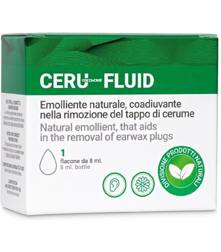 Ceru-Fluid Modalità d'uso: 3-4 gocce per volta immesse nel cavo dell'orecchio. Dopo aver applicato le gocce mettere il tampone di garza per protezione. Caratteristiche: emolliente naturale privo di solventi chimici, aiuta ad eliminare il tappo di cerume senza seccare l'epitelio dell'orecchio. Componenti: olio di girasole, squalano, olio essenziale di cajeput, olio essenziale di rosa, antiossidante Bha. ...