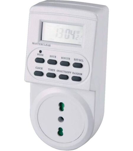 Presa timer digitale 230V; Programmatoree orario settimanale digitale; 48 programmi; Spina 16A 2P+T; Presa 10-16A 2P+T. Presa timer digitale 230V Programmatoree orario settimanale digitale, 48 programmi. Spina 16A 2P+T. Presa 10-16A 2P+T. ...