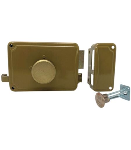 Con cilindro esterno staccato Mm. 35/90. Scrocco. Tirante e pomolo interno. Chiusura con catenaccio a 2 mandate. Altezza scatola e bocchetta Mm. 85. In acciaio verniciato nocciola. In dotazione: 3 chiavi piatte, 1 bocchetta, 1 borchia e viti di fissaggio. ...
