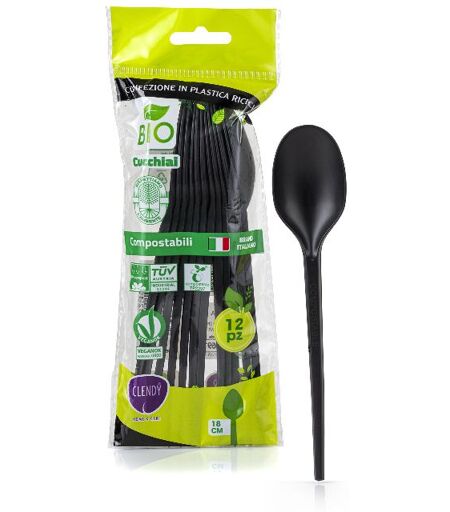 BIO + CLENDY Bio 12 Cucchiai Compostabili Neri
