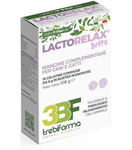 LACTORELAX Jelly - Descrizione Mangime complementare per cani e gatti in gelatine gommose. Contiene triptofano ed estratti di valeriana, passiflora per favorire un fisiologico rilassamento in caso di animali agitati, ansiosi, irritabili ed iperattivi. Adatto come integrazione quotidiana in caso di … ...