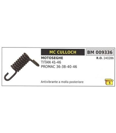 ANTIVIBRANTE A MOLLA POSTERIORE COMPATIBILE CON: MOTOSEGA MODELLI: TITAN 41 46 PROMAC 36 38 40 46 MC CULLOCH 009336 Codice originale: 240286 ...