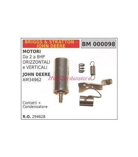 CONTATTO + CONDENSATORE MOTORE RASAERBA TOSAERBA TAGLIAERBA DA 2 A 8 HP ORIZZONTALI E VERTICALI JOHN DEERE AM34962 BRIGGS & STRATTON - JOHNDEERE Codice: 000098 Codice originale: 294628 AT ...