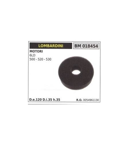 Filtro aria per MOTOCOLTIVATORE 6LD 500 520 530 D.e. 120 mm D.i.35mm h.35mm LOMBARDINI CODICE: 018454 CODICE ORIGINALE: 0054961130 AT ...