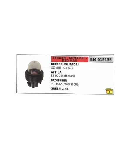PRIMER MISCELA BENZINA compatibile con ZENOAH - KOMATSU - RED MAX - GREEN LINE per DECESPUGLIATORE MODELLI: GZ 45N - GZ 50N per SOFFIATORE ATTILA MODELLI: EB 900 per MOTOSEGA PROGREEN MODELLI: PG 3612 CODICE: 015135 CODICE ORIGINALE: EM ...