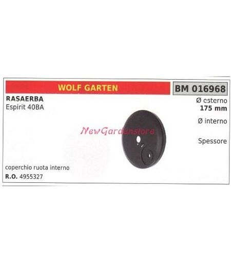 COPERCHIO RUOTA PER RASAERBA TOSAERBA TAGLIAERBA ESPIRIT 40BA Ø ESTERNO: 175mm Ø INTERNO: SPESSORE: WOLF GARTEN Codice: 016968 Codice originale: 4955327 AT ...