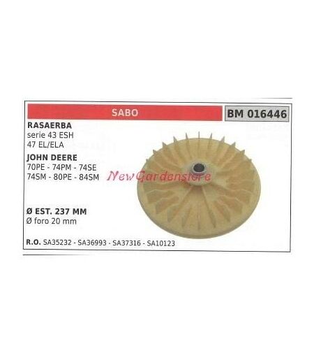 VENTOLA MOZZO PORTALAMA PER TRATTORINO RASAERBA TOSAERBA TAGLIAERBA SERIE 43 ESH 47 EL/ELA JOHN DEERE 70PA 74PM 74SE 74SM 80PE 84SM Ø ESTERNO 237mm Ø FORO 20mm SABO Codice: 016446 Codice originale: SA35232 SA36993 SA37316 SA10123 AT ...