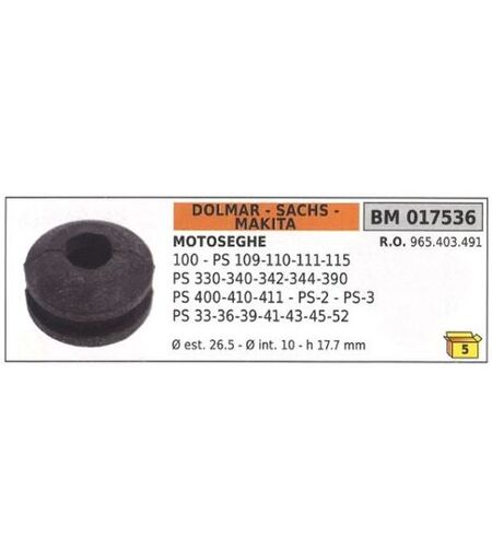 ANTIVIBRANTE COMPATIBILE CON: MOTOSEGA MODELLI: 100 PS 109 110 111 115 PS 330 340 342 344 390 PS 400 410 411 PS-2 PS-3 PS 33 36 39 41 PS 43 45 52 Ø ESTERNO: 26.5 Ø INTERNO: 10 h: 17.7 mm DOLMAR - SACHS - MAKITA 017536 Codice originale: 965.403.491 965403491 ...