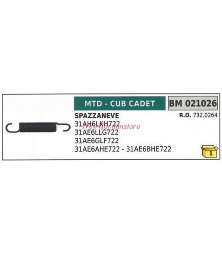 MOLLA TRAZIONE SEMOVENZA SPAZZANEVE 31AH6LKH722 31AE6LLG722 31AE6GLF722 31AE6AHE722 31AE6BHE722 MTD - CUBCADET Codice: 021026 Codice originale: 732-0264 AT ...