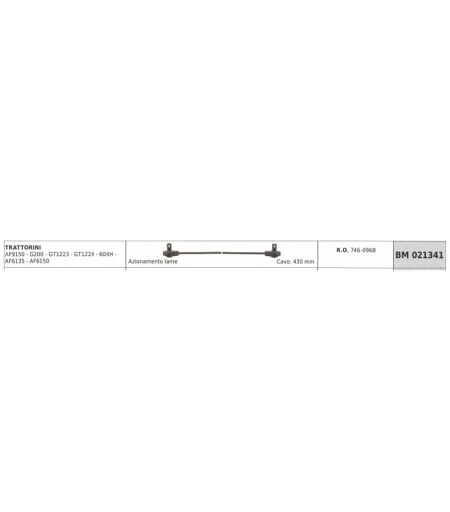 CAVO AZIONAMENTO LAME compatibile con MTD - CUB CADET - YARDMAN WHITE - TROY BILT - BOLENS - COLUMBIA per TRATTORINO RASAERBA TAGLIAERBA TOSAERBA MODELLI AF9150 - G200 GT1223 - GT1224 604H - AF6135 AF6150 MISURE cavo: 430 mm CODICE: 021341 CODICE ORIGINALE: 746-0968 EM ...