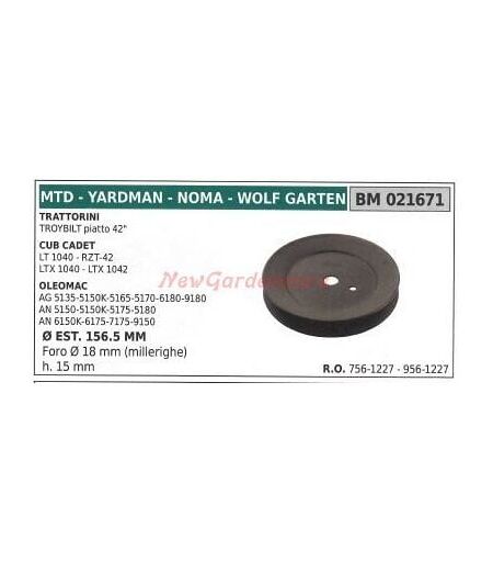 Puleggia per RASAERBA TOSAERBA TAGLIAERBA troybilt piatto da 42" cub cadet LT 1040 RZT- 42 LTX 1040 1042 OLEOMAC AG5135-5150K-5165-5170-6180-9180 AN 5150-5150K-5175-5180 AN 6150K-6175-7175-9150 Ø esterno 156.5mm h 15mm foro Ø 18mm (millerighe) MTD - YARDMAN - NOMA - WOLFGARTEN Codice: 021671 Codice originale: 756-1227 956-1227 AT ...