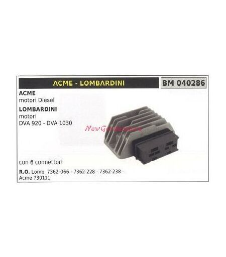 REGOLATORE DI TENSIONE MOTORI DIESEL ACME MOTORI DVA 920 1030 LOMBARDINI CON 6 CONNETTORI Codice: 040286 Codice originale: Lomb. 7362-066 - 7362-228 - 7362-238 - Acme 730111 AT ...