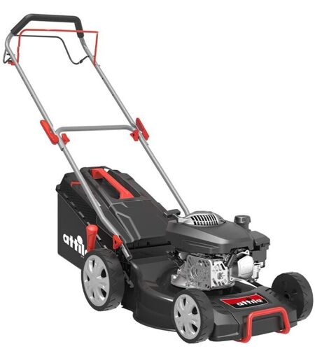 Rasaerba Attila AT 4815 S Rasaerba a scoppio a trazione Attila AT 4815 S, cilindrata 150 cc, capacità di taglio 46 cm, area di taglio fino a 1400 mq. Avanzamento a trazione, 1 velocità. Manico ergonomico per un facile rimessaggio, impugnatura soft-grip. Sacco in tela di grande capacità e facilmente svuotabile, top sacco antipolvere. Kit mulching in dotazione. Telaio in acciaio super nervato, altezza di taglio facilmente regolabile in 7 posizioni tramite leva centralizzata. Motore DUCAR DV 150 OHV, a valvole in testa, silenzioso e a basse emissioni. Deflettore con parasassi di sicurezza. Telaio : Acciaio Motore : Ducar, DV150 OHV Potenza : 150 cc Trazione : 1 velocità Larghezza : 48 cm Capacità di taglio : 46 cm Altezza di taglio : Centralizzata, 25/75 mm Capacità sacco : 55 lt Peso : 29,5 kg Info : Kit mulching di serie ...