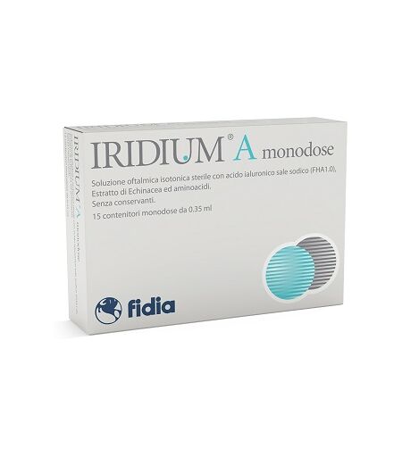 IRIDIUM A monodose - Descrizione Soluzione oftalmica isotonica sterile con acido ialuronico sale sodico (FHA 1.0),aminoacidi ed estratto di Echinacea, senza conservanti, utile per l'idratazione ela lubrificazione della superficie oculare. IRIDIUM A monodose protegge e lubrifica la superficie dell'o… ...