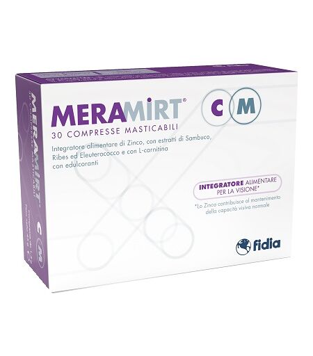 MERAMIRT CM - Descrizione Integratore alimentare costituito da nutrienti in grado di contrastare l'azione ossidante dei radicali liberi che possono essere prodotti in corso di astenopia, un insieme di sintomi causati da affaticamento dei muscoli oculari che si manifesta con affaticabilità alla lett… ...